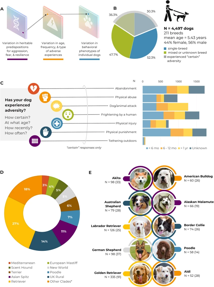 No que respeita ao medo, Airedale Terriers e American Eskimo Dogs destacaram-se como particularmente sensíveis à adversidade precoce, enquanto Labrador Retrievers novamente mostraram pouca diferença.