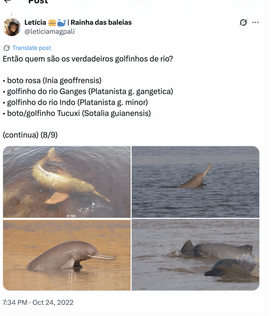 No post abaixo veja a diferença entre os vários golfinhos do rio